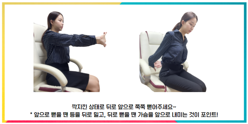 업무 중 수시로 해보신다면 몸도 가벼워지고, 업무 효율도 쑥쑥 올라가게 될 거예요~