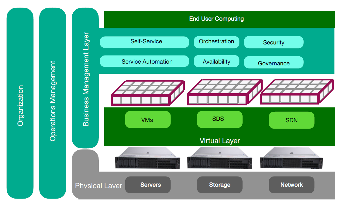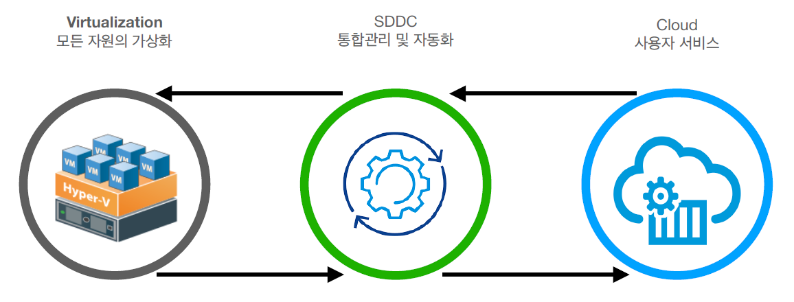 물론 완성된 SDDC가 아니더라도 클라우드 서비스를 제공할 수 있지만, 가장 이상적인 클라우드 서비스 인프라로 평가되는 것이 SDDC이며, 자동화를 통해 관리 부담을 덜어주는 것이 특징 중 하나입니다.