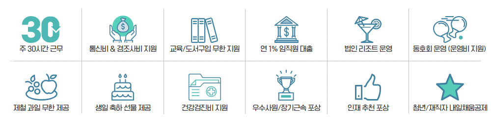 특히, 주 30시간(10 to 5) 근무 제도와 최근 도입한 건강검진비 지원, 구성원 생일 축하 제도는 실제로 구성원의 삶의 질 향상에 도움이 되었다는 많은 긍정적 반응을 얻고 있습니다.