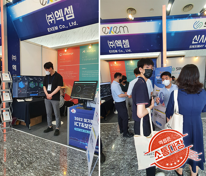 엑셈은 최근 가장 많은 문의와 관심을 받는 두 솔루션, XAIOps(AI 기반 IT 운영 지능화솔루션)와 MaxGauge for MongoDB(NoSQL DBMS)를 주력 홍보했습니다.