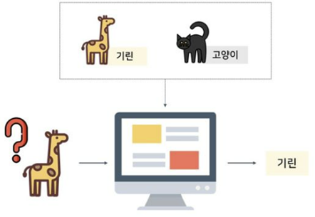 지도 학습(Supervised Learning)은 훈련 데이터에 레이블(정답)이 있는 학습 방법이며, 대표적으로 K-nearest neighbors(K-최근접 이웃), Linear regression(선형 회귀), Logistic regression(로지스틱 회귀), Support vector machine(SVM, 서포트 벡터 머신), Decision tree(결정 트리), Random forest(랜덤 포레스트), Neural networks(신경망) 등이 있다. 아래 그림을 예로 들자. 기린(정답)과 고양이(정답)의 이미지를 잘 훈련한 알고리즘은 기린 이미지를 보았을 때 기린이라고 판단할 것이고, 고양이의 이미지를 보았을 때에는 고양이로 판단할 것이다.