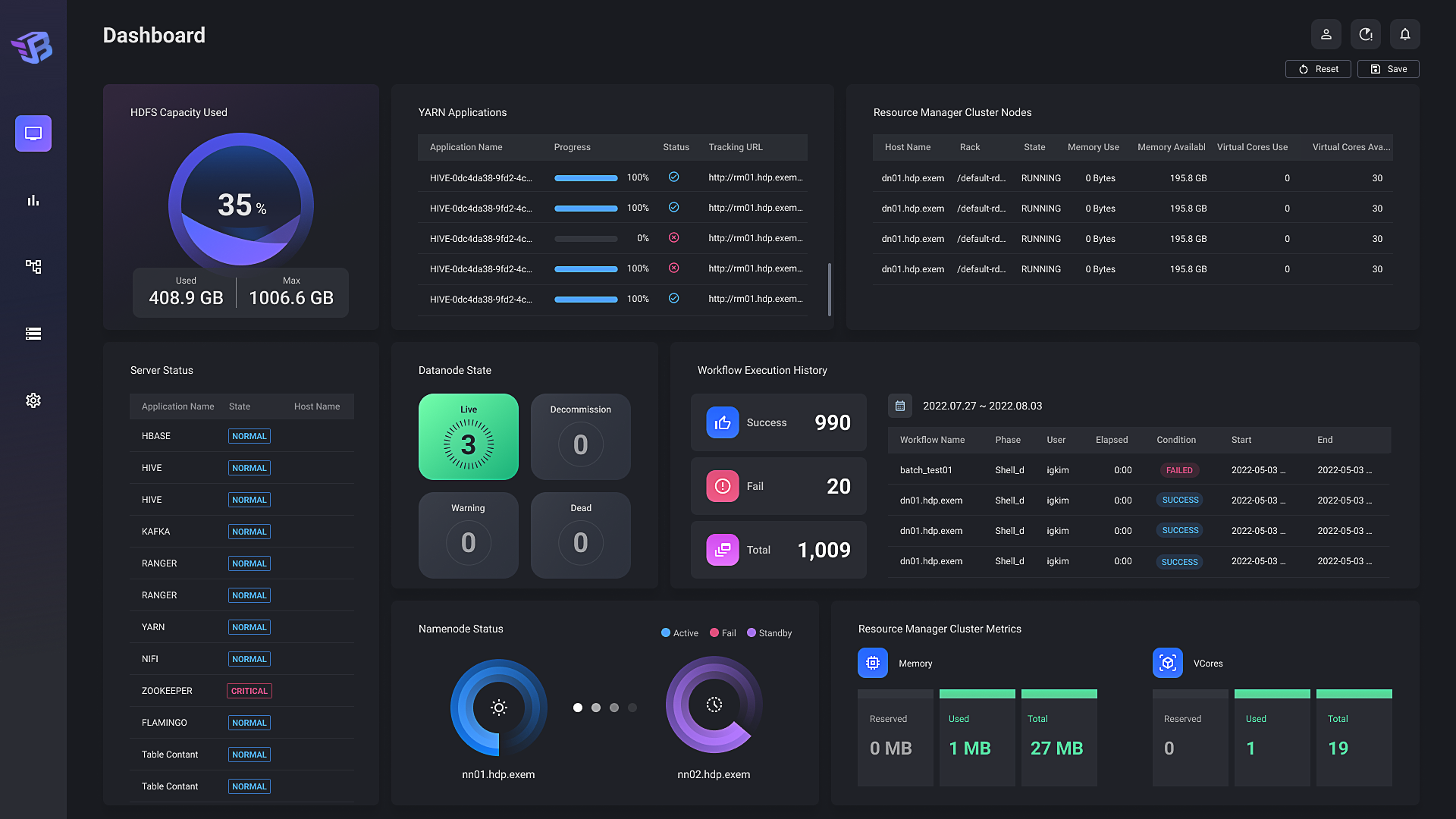 EBIGs는 빅데이터 시스템의 설치, 운영, Health Check & 모니터링, 튜닝 그리고 시스템 확장 등 빅데이터 운영 관리에 필요한 모든 것이 포함된 빅데이터 플랫폼