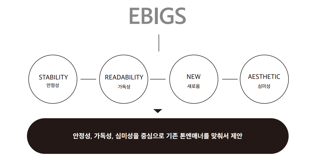 오랜 시간동안 다양한 시안들이 나왔고, 많은 분들의 피드백이 오고 가며 계속 수정을 거듭했습니다. 그 과정 속에서 EBIGs(이빅스) 로고의 의미와 디자인은 정교하게 다듬어져 갔습니다.
