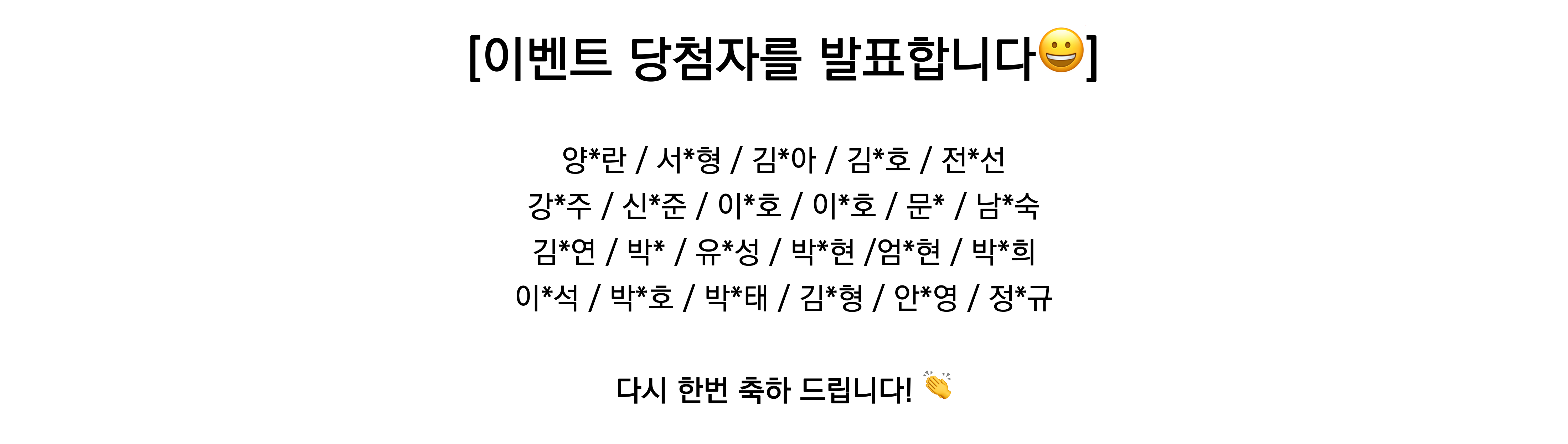 - 1/19(목) ~ 1/29(일)까지 참여 가능하시고, 1/30(월)에 당첨자가 발표됩니다.