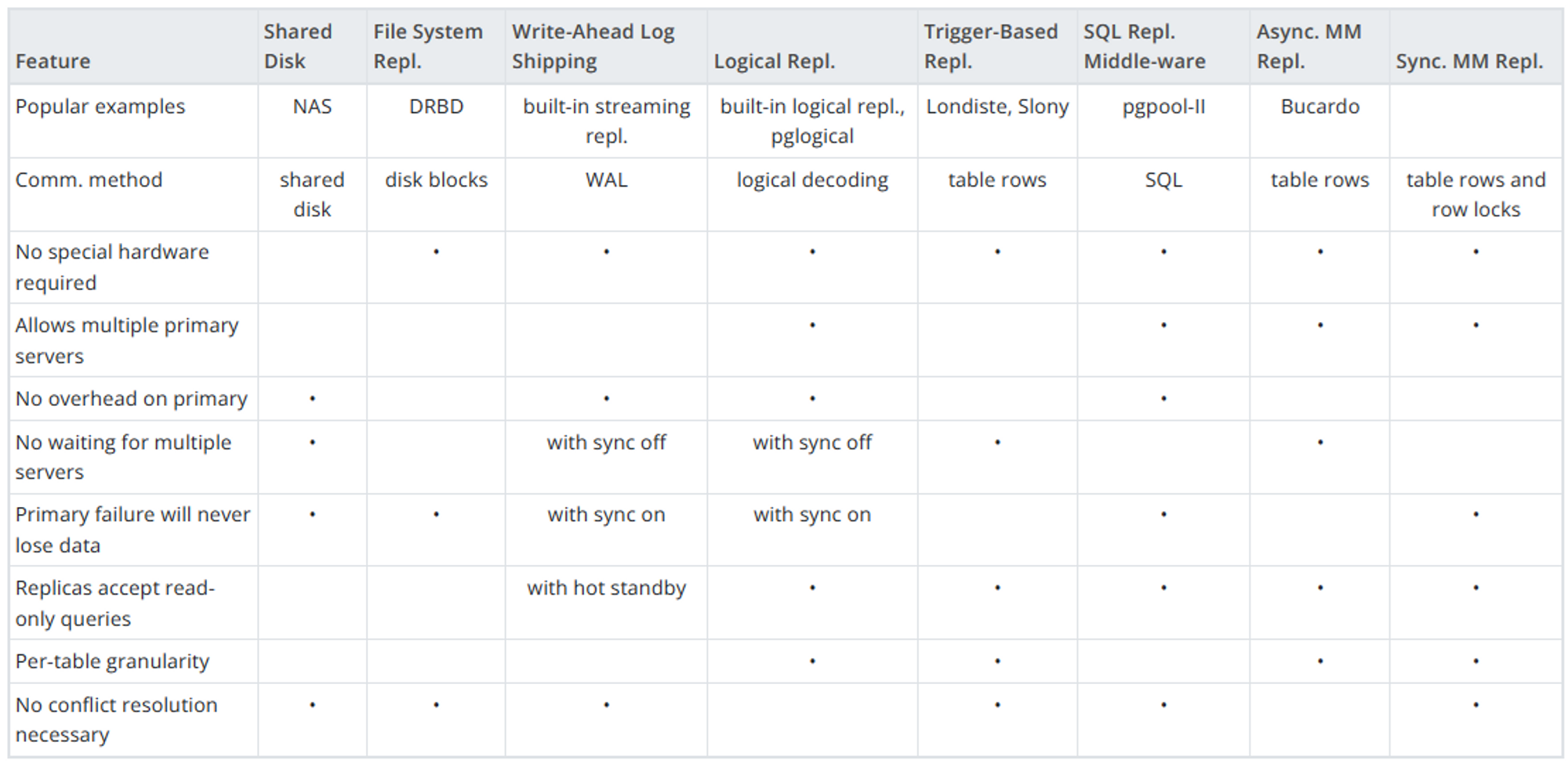 PostgreSQL Replication 종류