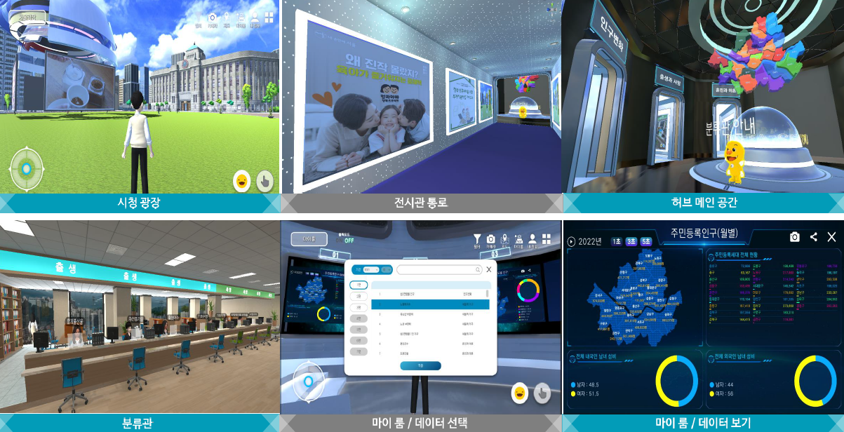 서울 인구관은 가구 변화, 인구 이동, 분포, 성장 등의 인구 지표를 사용자가 한눈에 알아볼 수 있도록 다양한 차트, 표, 지도 등으로 제공하는 지리정보체계(GIS)와 3D 메타버스 형태로 구성됐다. AI 챗봇 검색 서비스에서는 사용자가 서울시 기대 수명, 월세 가구 수, 구직 활동자 수, 실업률, 범죄 발생 현황 등 각종 정보를 질의하여 데이터와 통계 정보를 편리하게 조회하고 시각화 분석을 수행해 맞춤 데이터를 확인할 수 있다. 챗봇은 인구관과 연동돼 사용자 질의에 대한 답변과 관계되는 인구관의 특정 메뉴로 이동시킨다.