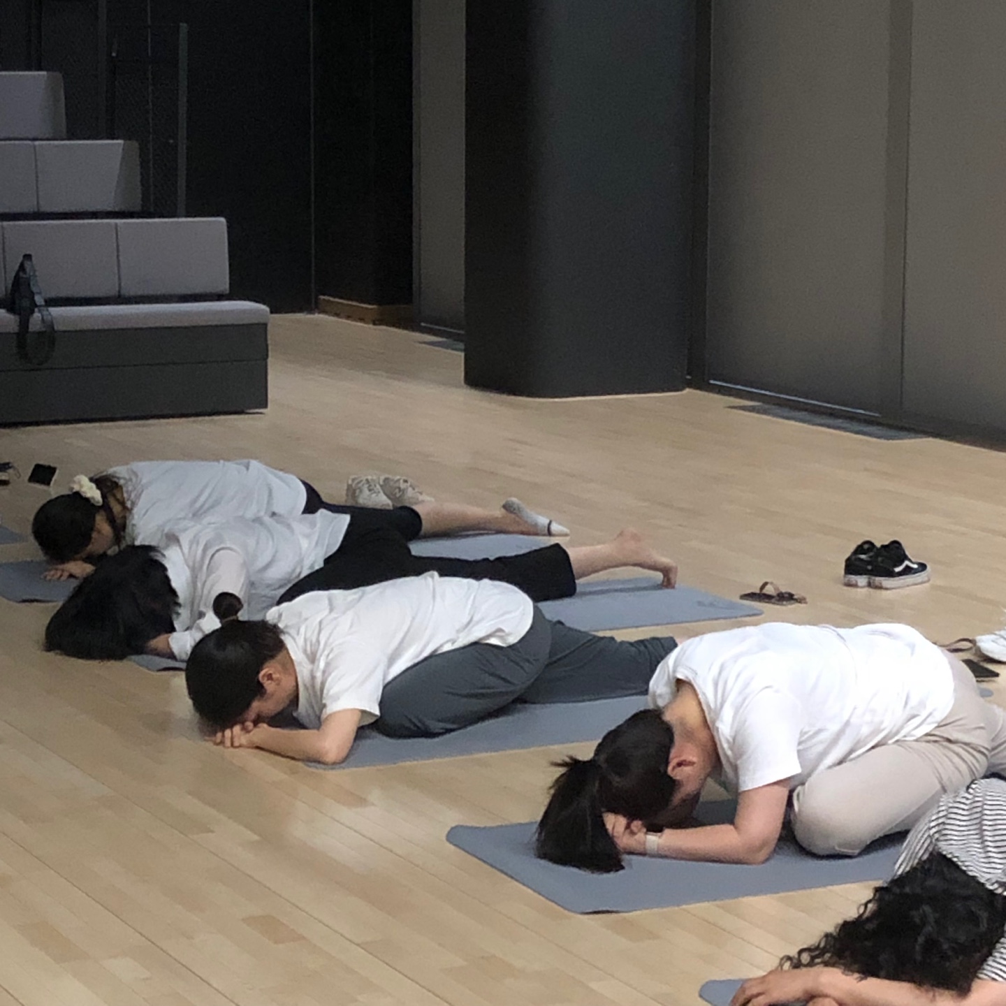 전신 스트레칭 후, 자리에 모두 누워봅니다. 회사를 다니면서 앉을 줄만 알았지, 이렇게 바닥에 누워보기는 처음입니다. 나무 바닥에서 올라오는 따뜻한 온기에 나른해집니다. 가만히 누워있는데 별의별 생각이 다들다가 나도 모르는 사이에 스르르 잠도 듭니다.