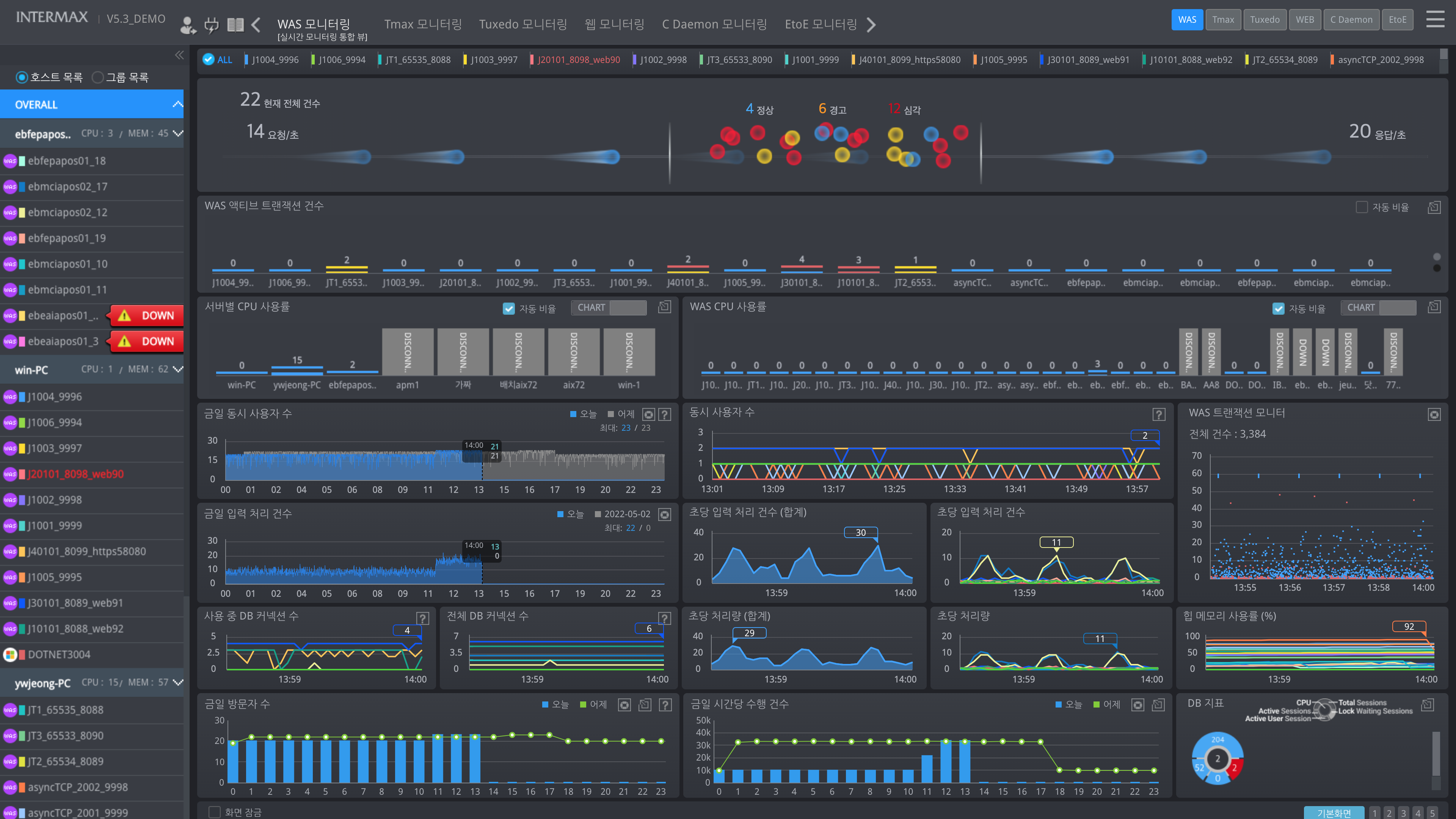 이와 더불어 대기업 유통사와 대형 보험사에서는 클라우드 통합 관제 솔루션 ‘클라우드모아(CloudMOA)’와 DBPM 솔루션 ‘맥스게이지(Maxgauge)’, 인터맥스까지 3개 제품을 함께 도입하며 온프라미스와 클라우드의 통합 모니터링 환경을 구축했다. 엑셈은 다수 기업, 기관들이 올해 차세대 IT시스템 구축 사업을 전개함에 따라 이에 맞는 E2E 기반의 온프레미스 및 클라우드 통합 모니터링 방식을 새로이 채택함에 따른 것이라고 설명했다. 엑셈은 인터맥스가 쿠버네티스(Kubernetes), 오픈시프트(Openshift), AWS를 지원하는 클라우드 환경 모니터링과 더불어, 클라우드모아와의 연동으로 복잡한 MSA 환경에 대한 E2E 상세 분석이 가능하다는 점에 따라 시장에서 우위를 확보하고 있다고 전했다.