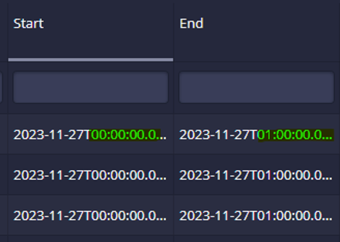 2. 세그먼트 당 최대 데이터의 row 개수를 지정할 수 있습니다. 세그먼트가 해당 설정 만큼의 row를 수집하면 동일한 시간대의 인덱스가 다른 세그먼트가 생성됩니다. 예) 세그먼트 당 최대 데이터의 row 수를 500만개로 지정했을 때, 다음과 같이 동일한 시간대에 0번과 1번의 인덱스로 구분된 세그먼트가 생성된 것을 확인할 수 있습니다.