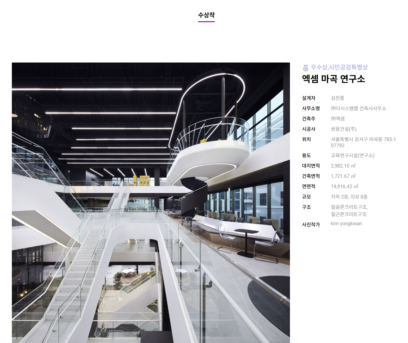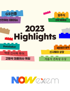 글로벌 IT 기업 엑셈이 올해는 건축물로도 명성을 떨쳤습니다. 건축물의 가치를 인정받아 서울특별시 건축상 우수상과 시민공감특별상을 수상한데 이어, 한국건축가협회상을 수상했습니다. 요즘 특히 일하는 공간에 대한 관심이 높아지고 있습니다. 공간이 곧 복지로 연결되는 요즘, 우리가 너무나 잘 아는 기업들도 직원들의 근무 환경에 관심을 가지고 너도나도 공간 마케팅을 합니다. 사옥으로 더욱 유명해진 기업들도 있죠. 올 한해 엑셈은 건축을 통해 브랜드 위상을 한 층 높였습니다. 좋은 공간에, 좋은 사람이 모이고, 좋은 제품이 나옵니다!