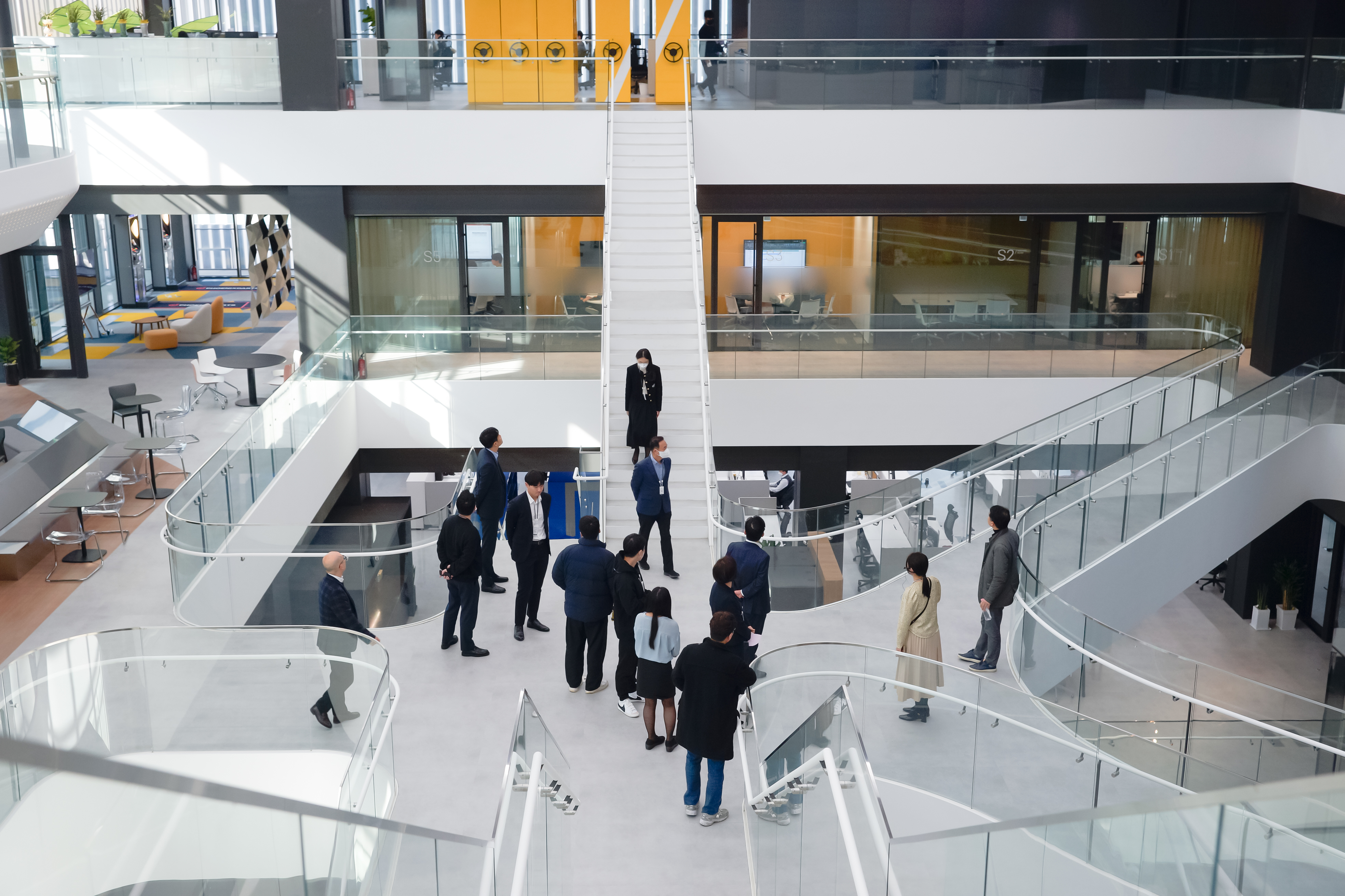 기사화가 되니 홍보팀으로 사옥 투어가 가능하냐는 문의가 쇄도했습니다. 그리하여 업무 공간의 혁신과 기업 문화에 대한 소통을 이어가기 위해 홈페이지를 통해 사옥 투어 신청을 받고, 수요일마다 투어가 시작되었습니다. 공간을 통한 소통은 내년에도 이어집니다.