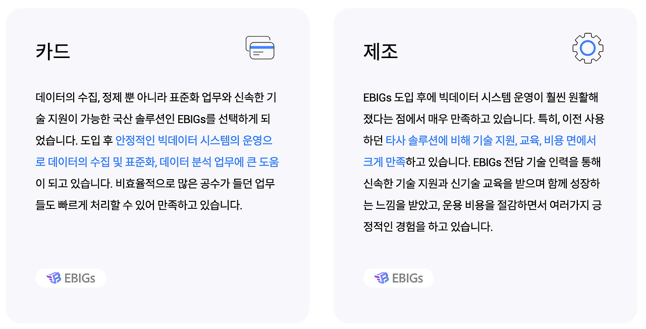 EBIGs를 사용하고 있는 고객들의 반응은?