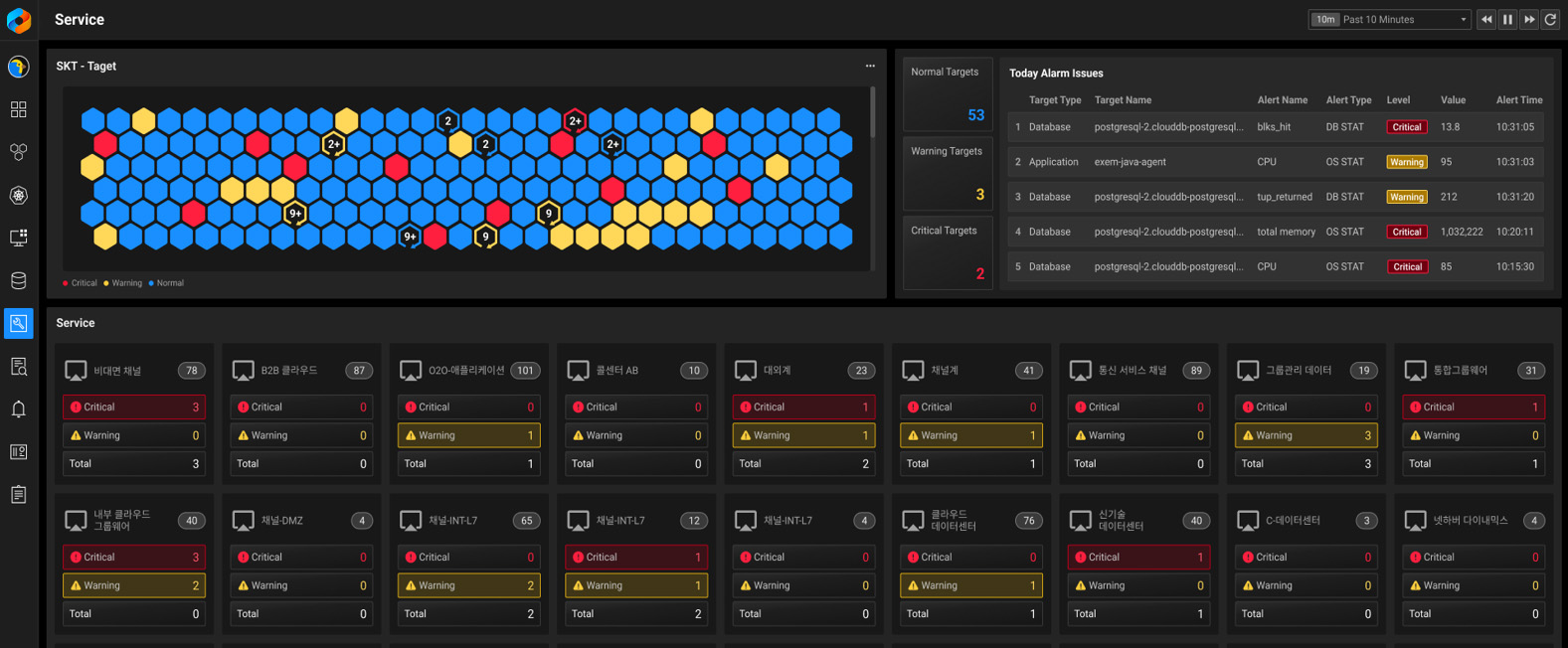 비즈니스 단위로 인프라 모니터링이 가능한 화면을 제공합니다. 데이터베이스, 애플리케이션, 서버 등 각 영역으로 수집된 데이터를 비즈니스 단위로 재정립하여 한 눈에 볼 수 있는 화면입니다. DB 관리자와 운영자 간의 문제 인식과 협업의 허들을 낮춥니다.