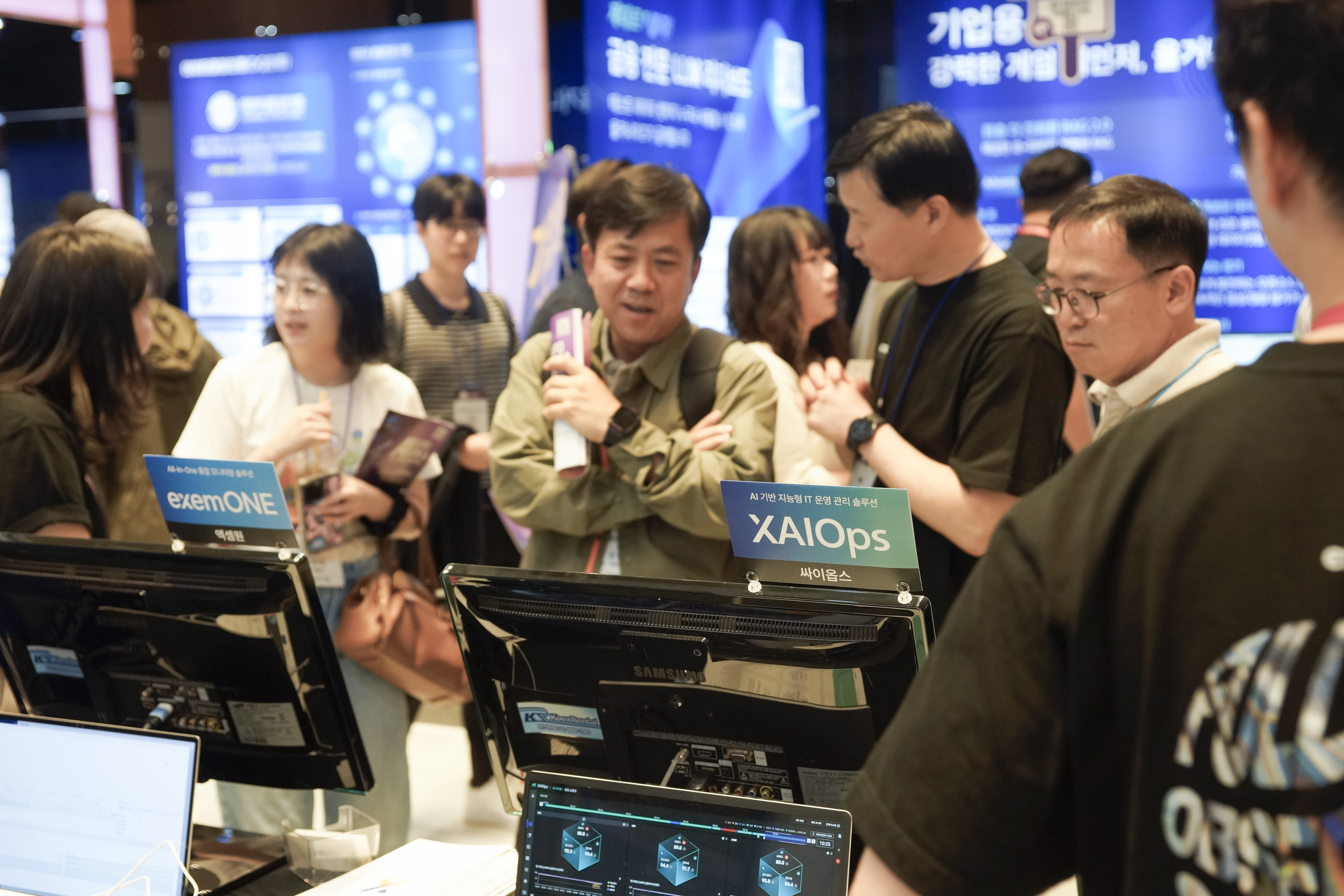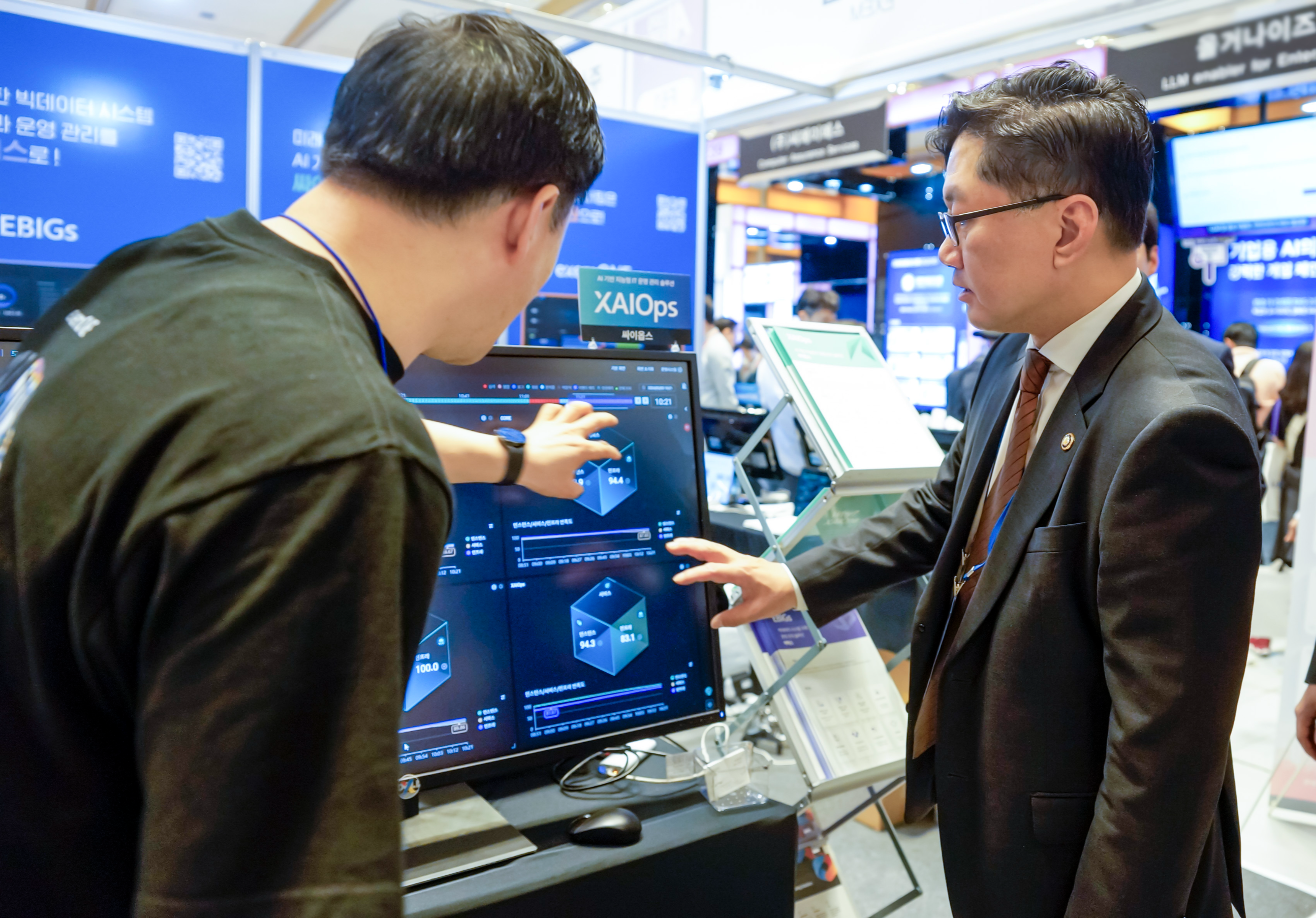 그거 아세요? 엑셈 부스에 류광준 과학기술정보통신부 과학기술혁신 본부장님께서 방문해 제품 시연을 참관했다는 사실. 무중단 IT 운영을 지원하는 AIOps 솔루션 싸이옵스에 높은 관심을 보이셨고, 엑셈은 제품 소개와 더불어 IT 운영 자동화 및 효율화 전략을 제시했습니다. AI에 대한 투자를 강화해야 한다는 묵직한 말씀이 인상깊었습니다. 엑셈의 AI 기술력을 집중 조명받았던 시간이었습니다.