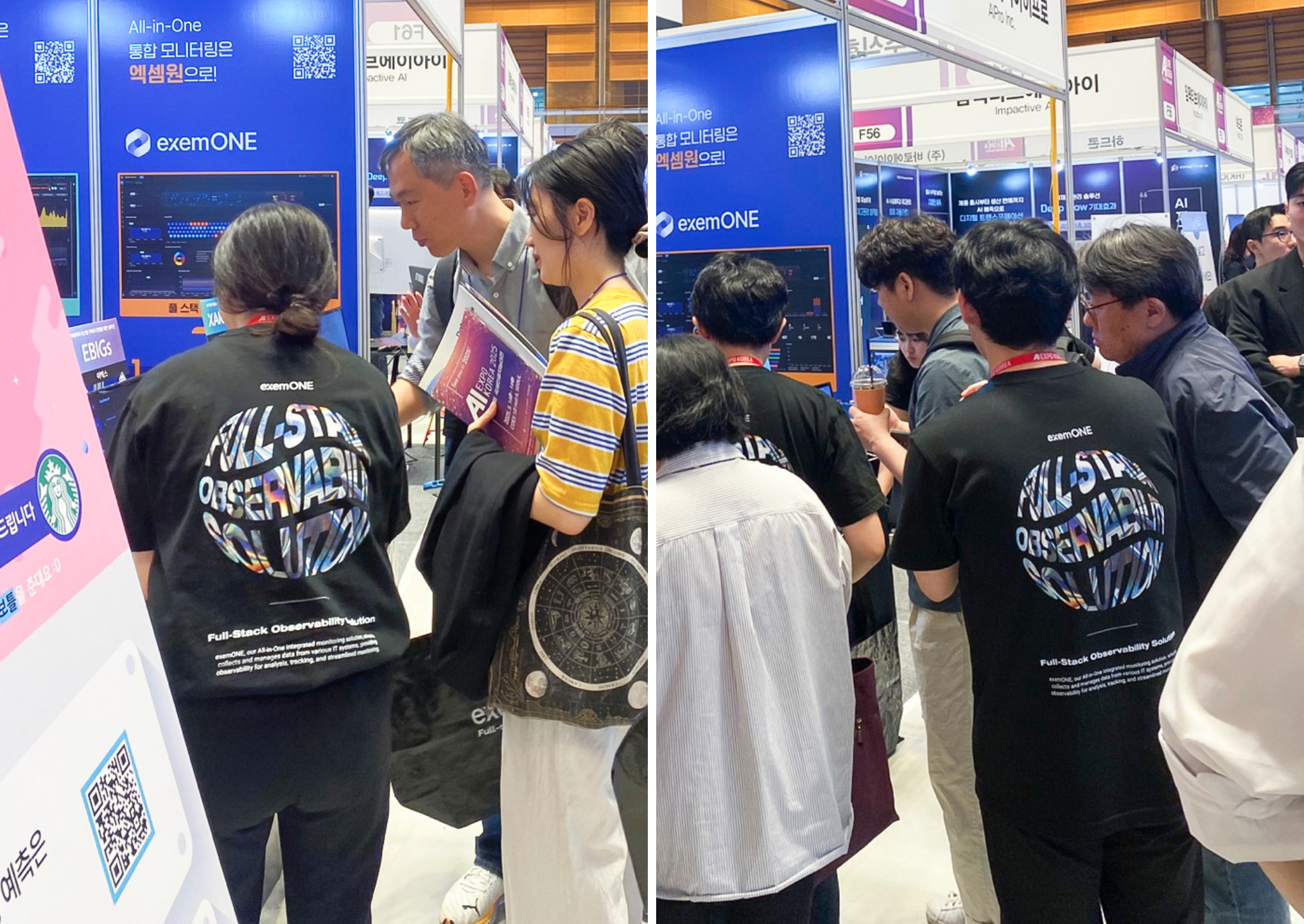 엑셈 솔루션은 현재 국내에만 800여개 기업의 환경을 지원하고 있습니다. 그렇다보니 이미 엑셈 솔루션을 도입한 고객분들께서도 부스를 많이 찾아주셨습니다. 기존 고객분들께서는 엑셈이 올해 출시한 All-in-One 통합 모니터링 솔루션에 큰 관심을 가지셨습니다. 기다려주셨다고 해주셔서 감사합니다. 고객 환경의 애로사항을 경청하고 솔루션을 줄 수 있는 각 영역별 스페셜리스트들이 부스를 지원했기에, 참관객들이 스쳐 지나가는 부스가 아니였습니다. 그랬기에 엑셈 엔지니어들은 실무자들의 요구사항을 직접 들으며, 제품이 해야할일을 추가적으로 판단했습니다.