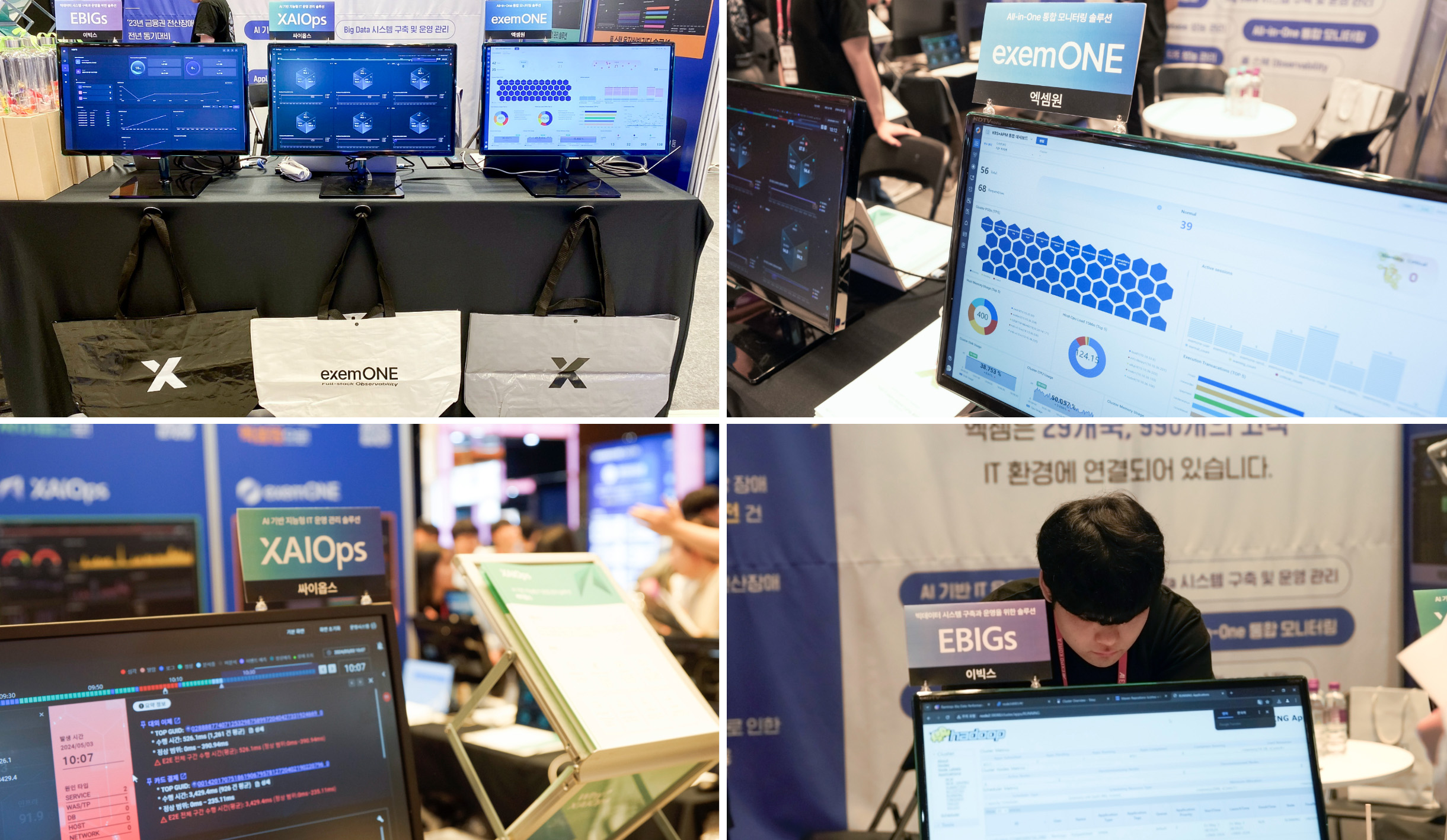 AI를 논하는 자리에 빠질 수 없는 AIOps 솔루션 XAIOps(싸이옵스)는 AI EXPO의 단연 주인공이었습니다. AI와 짝꿍처럼 따라다니는 방대한 데이터들의 저장과 운영 관리를 지원하는 EBIGs(이빅스), 이빅스는 저희가 만들어서가 아니라, 외산대비 가격부터 기능, 지원까지 너무 장점이 많은 솔루션이라 알아서 먼저 찾아주셨습니다. 더 많은 입소문이 나야하는 솔루션이에요. 이어, 참관객분들의 반응이 가장 궁금했던 통합 신규 솔루션 exemONE(엑셈원)까지, 이 세가지 주요 솔루션이 엑셈 부스에 나왔고, 동시 시연되다 보니 참관객 분들이 찾으시는 솔루션을 적재적소로 추천해 드릴 수 있었습니다. 싸이옵스 보러 왔다 엑셈원에 놀라고! 엑셈원 보러왔다 이빅스까지 눈여겨보시고!