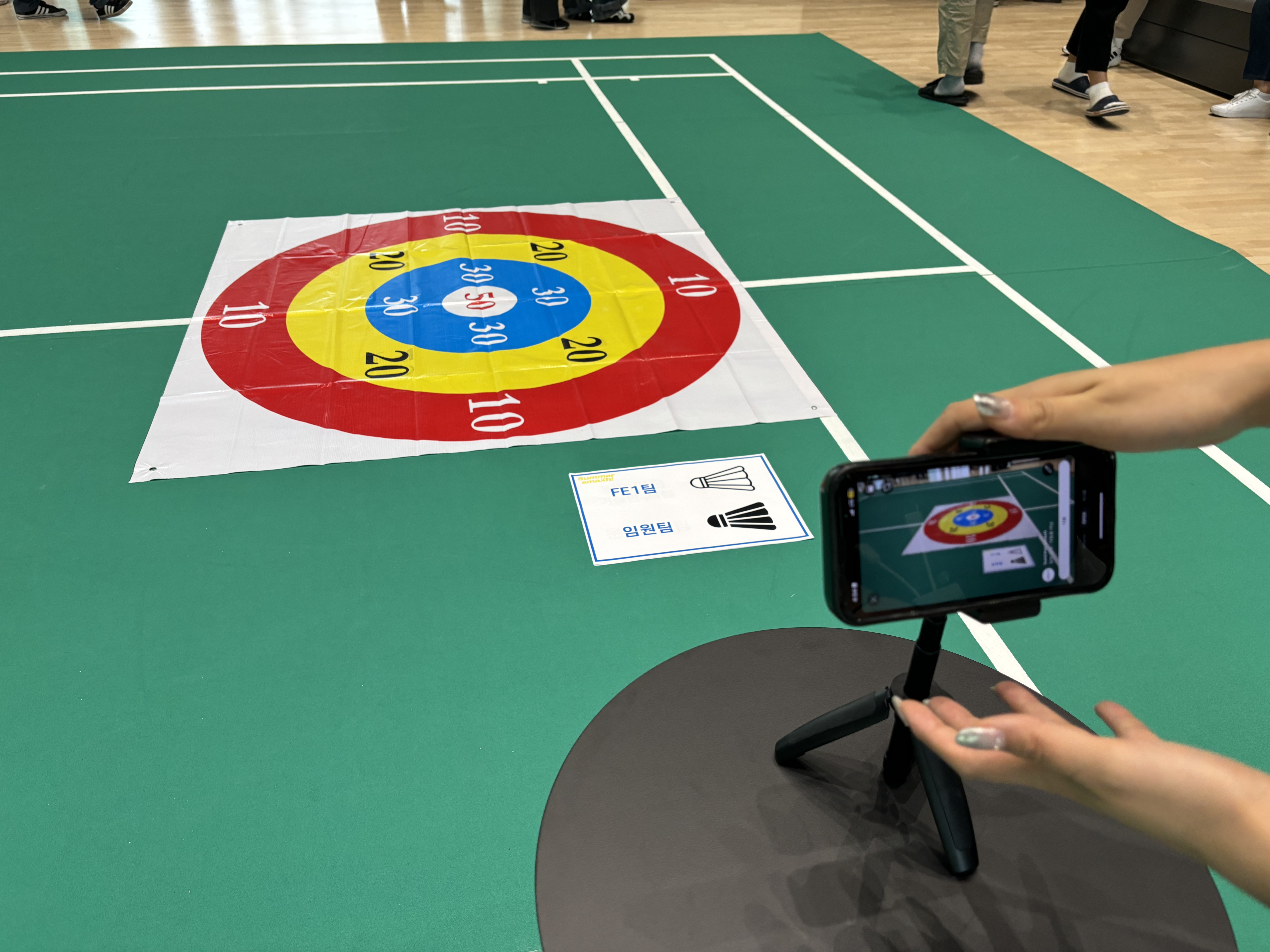 6월 24일 월요일부터 한 주간 진행되는 대회는 총 3차전으로 진행되며, 전사가 참여합니다. 1차전은 배드민턴 코트 반대편에서 바닥 과녁판을 노려 서브합니다. 팀 대항으로 진행되며, 양팀 각각 3명의 선수가 출전해, 1명당 단 1번의 기회로 서브 후, 팀 3명의 전체 점수를 계산하는 방식입니다.