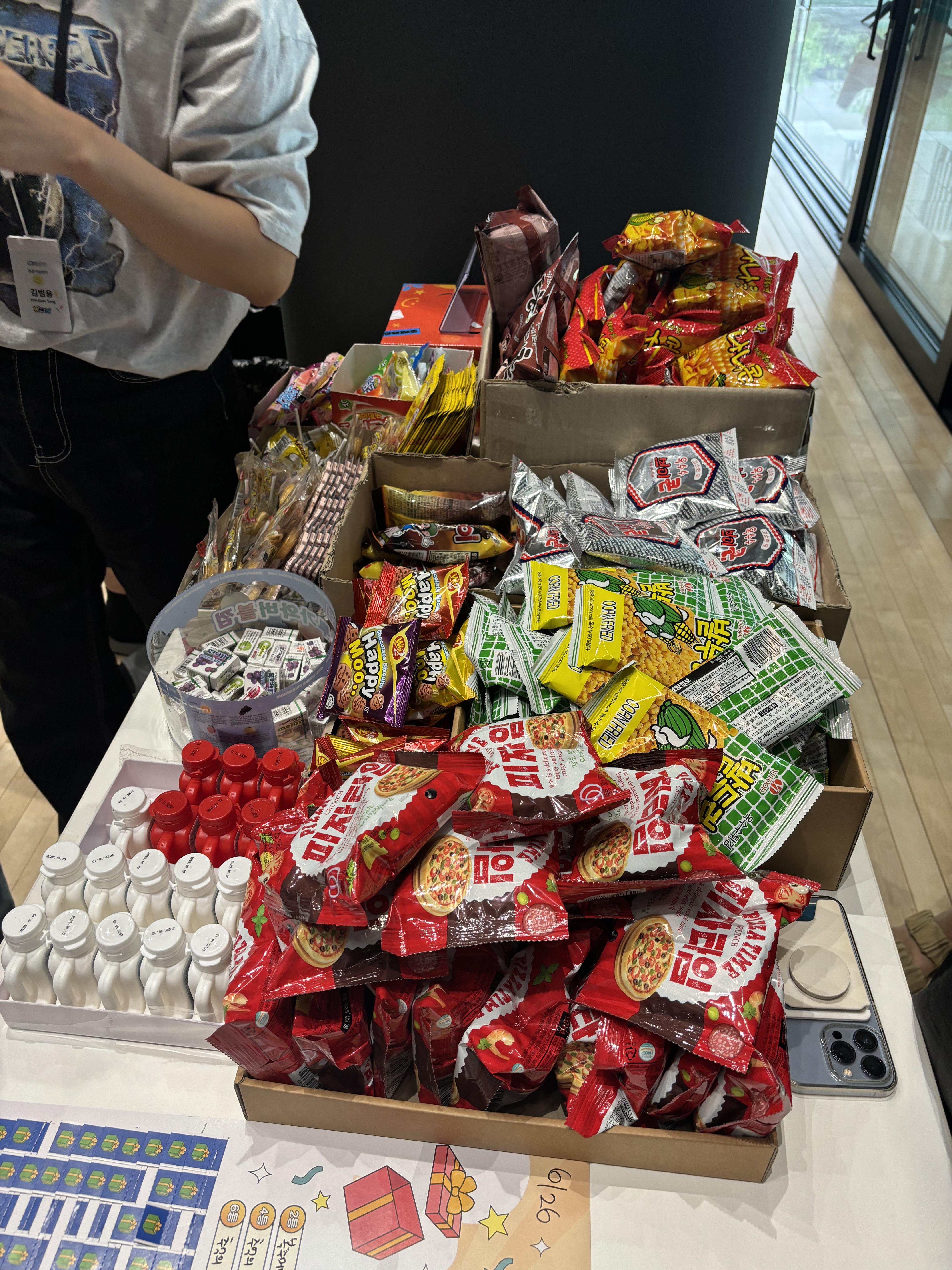 팀에서 3명만 출전이 가능하기에 아쉽게 경기 참여를 못하신 분, 그리고 경기를 관람하러 오신 많은 분들이 더 재미있게 현장을 즐길 수 있도록 퀴즈와 간식도 많~~~이 준비했습니다. 물론, 그냥 먹을 수 있으면 참 좋겠지만, 행운의 뽑기 기회가 있어야 또 쫄깃쫄깃 하죠. 그래봤자, 과자 2개 먹느냐, 3개먹느냐 ㅎㅎㅎ 그럼에도 뽑기 1등은 과자 박스가 선물로 갑니다.