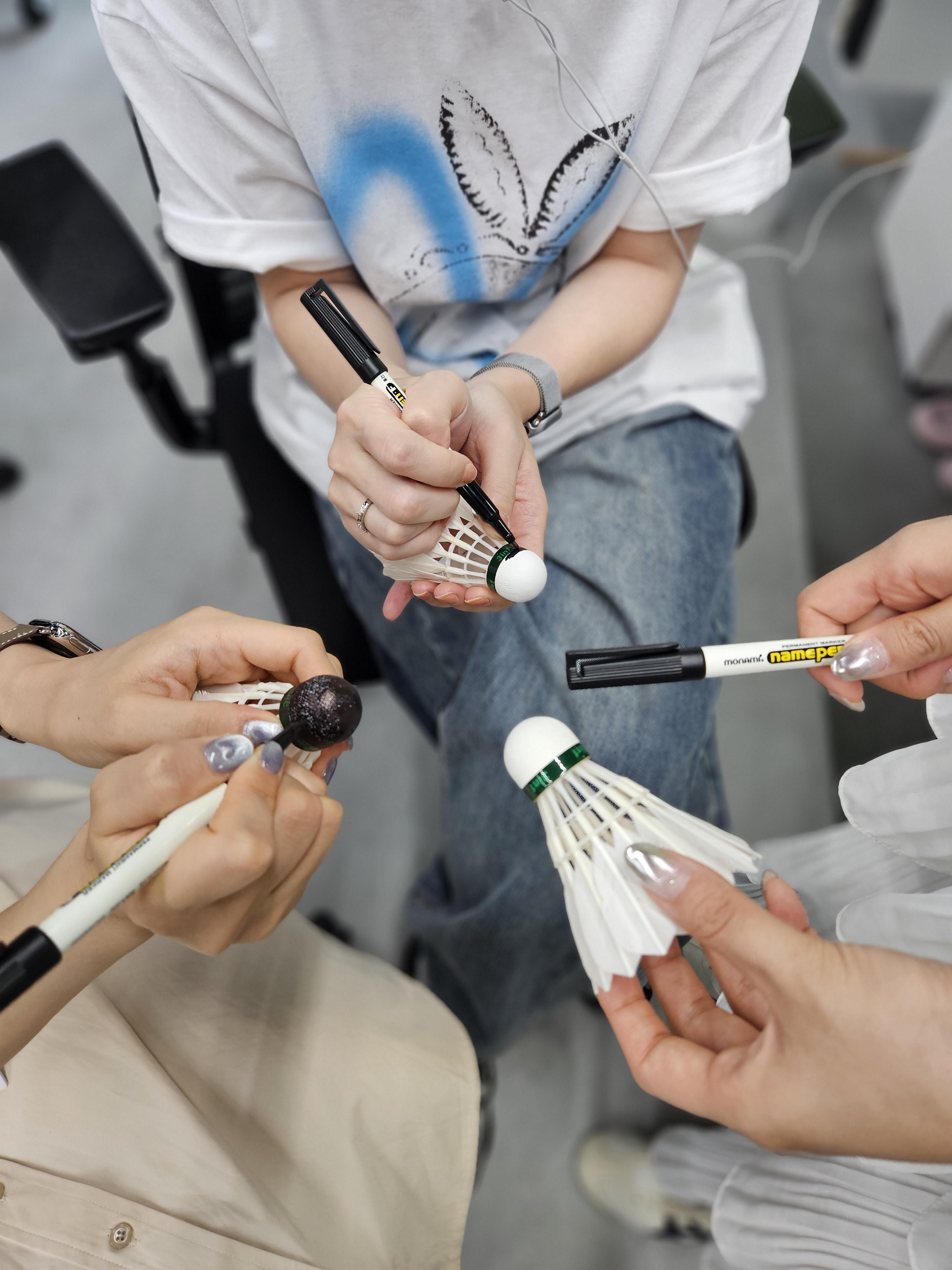 공정한 경기를 위해, 셔틀콕에 색칠도 하고, YouTube 생중계까지 준비했다