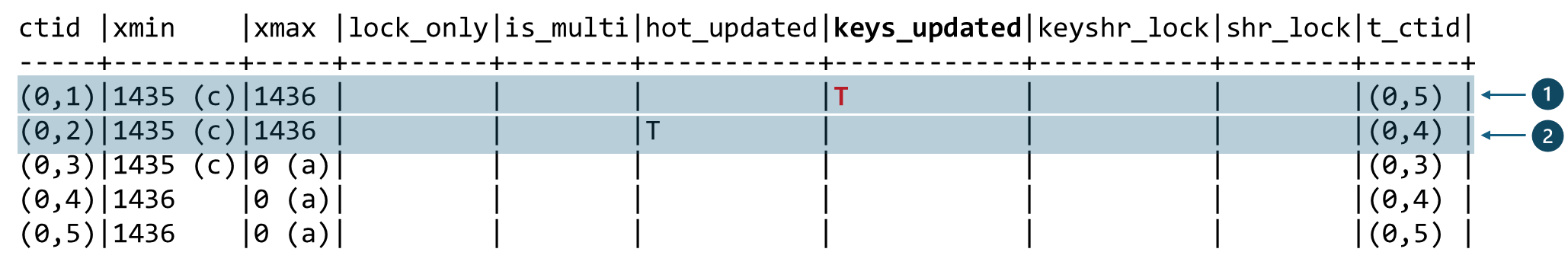 CASE WHEN t_infomask2 & 8192 = 8192 THEN 'T' end as KEYS_UPDATED,