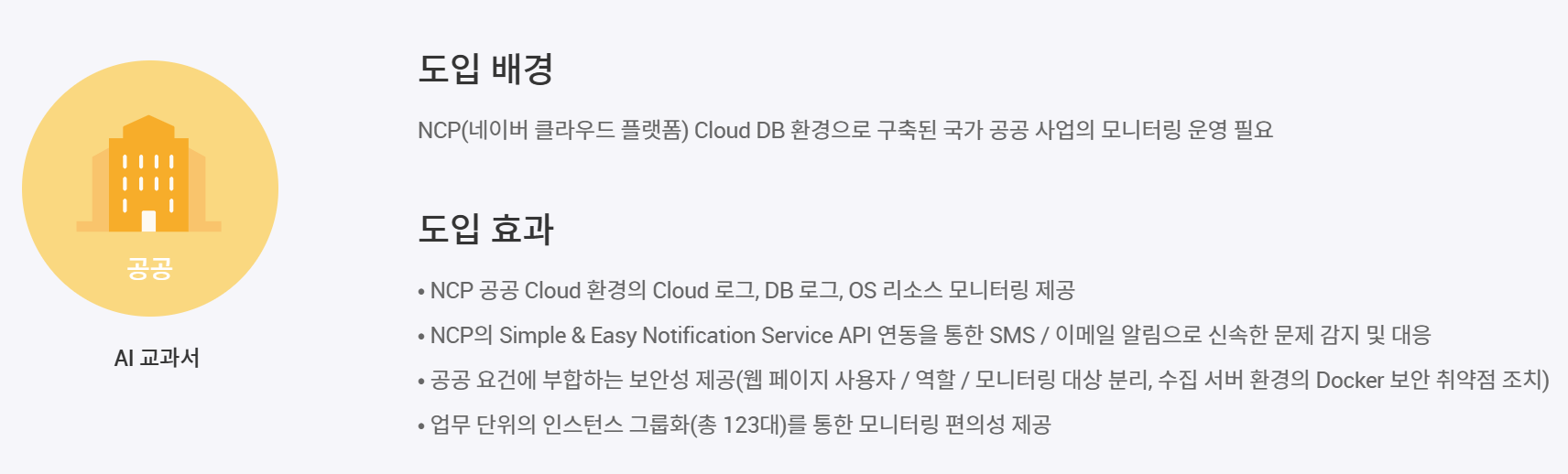 - 대시보드 위젯에서 서버 자원 현황을 쉽게 인지할 수 있으며, 클릭 시 화면 연계로 상세 정보 파악 가능