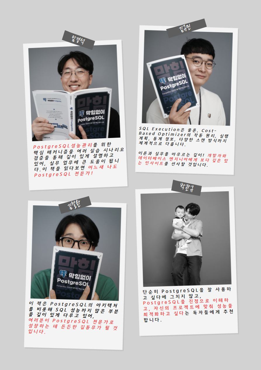 Q6. <막힘없이 PostgreSQL>의 저자 4분을 짧게 소개해주세요.