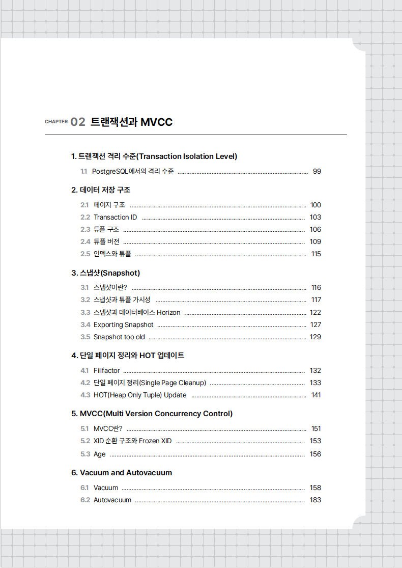 막힘없이 PostgreSQL을 집필하면서 가장 중점을 둔 부분은 성능관리에 필요한 핵심 원리의 이해였습니다. 현재 서점에 나와있는 책들은 거의 개발에 필요한 PostgreSQL 사용법이나 SQL 기본 작성법 등에 머물러 있습니다. 저희 책은 아키텍쳐부터 트랜잭션 처리, 튜플 버전 관리, Vacuum 의 필요성, SQL 실행계획 분석 등 운영에 필요한 성능관리 핵심 개념을 심도있게 다뤘습니다.