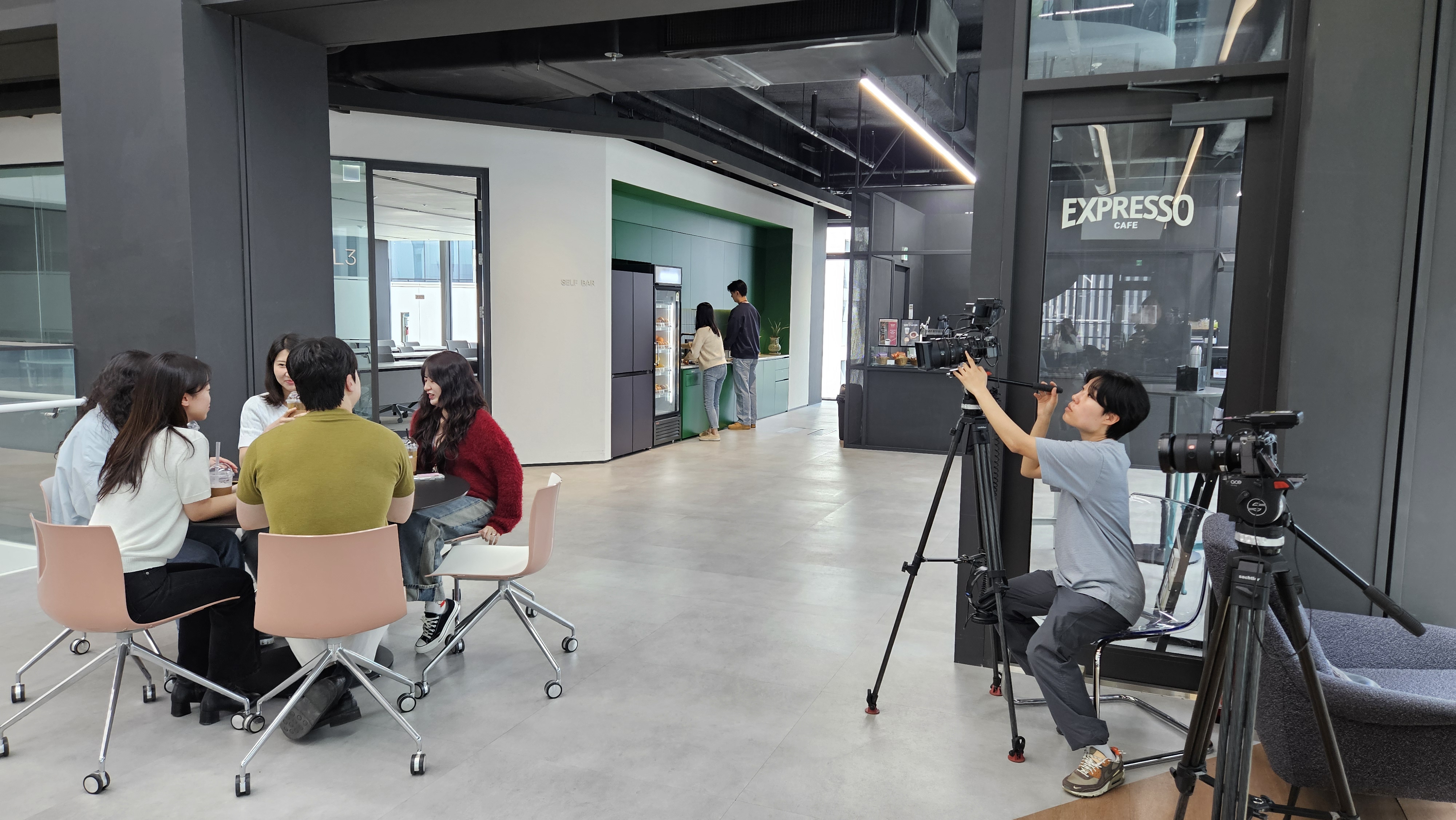 사옥 투어는 오랜 기간 많은 분들과 마주했기에 전혀 어렵지 않았지만, 촬영을 앞두고 단 하나의 걱정이 있었습니다. 사내 직원들의 반응과 촬영 협조!! 엑셈에 특히 MBTI, ‘I’ 성향을 가진 분들이 많다는 거 아세요? 사전 협조 없이 카메라가 들이대면 잘 먹던 밥도 못 먹고, 화장실에서 안 나올 것 같았기에, 협조를 구하는게 정말 1번이었습니다.