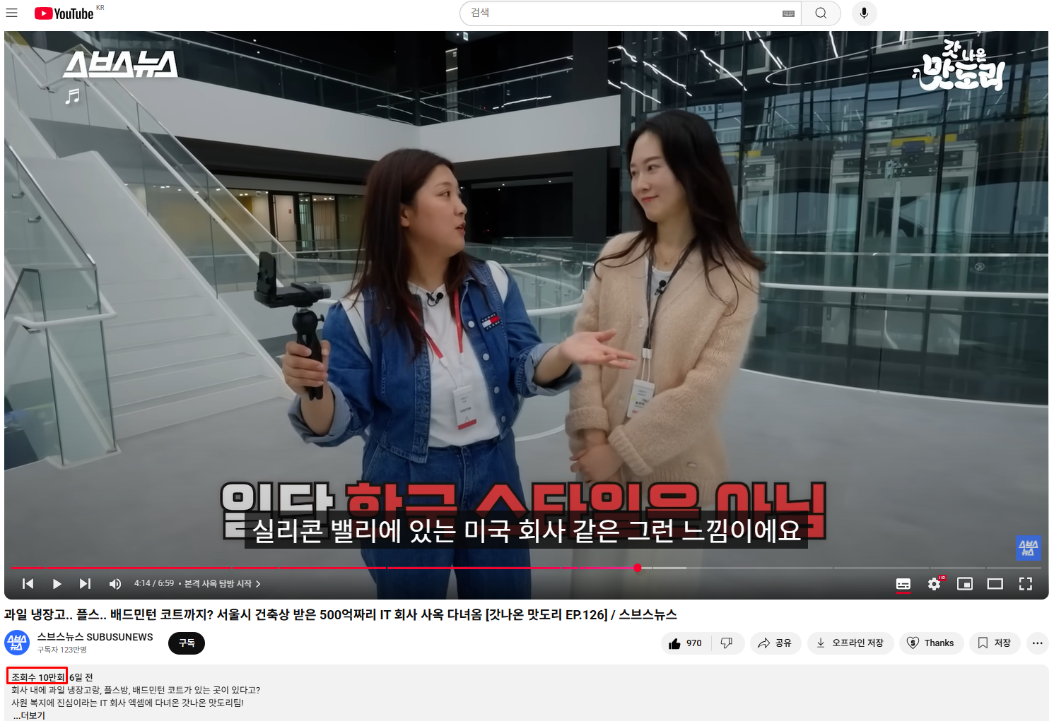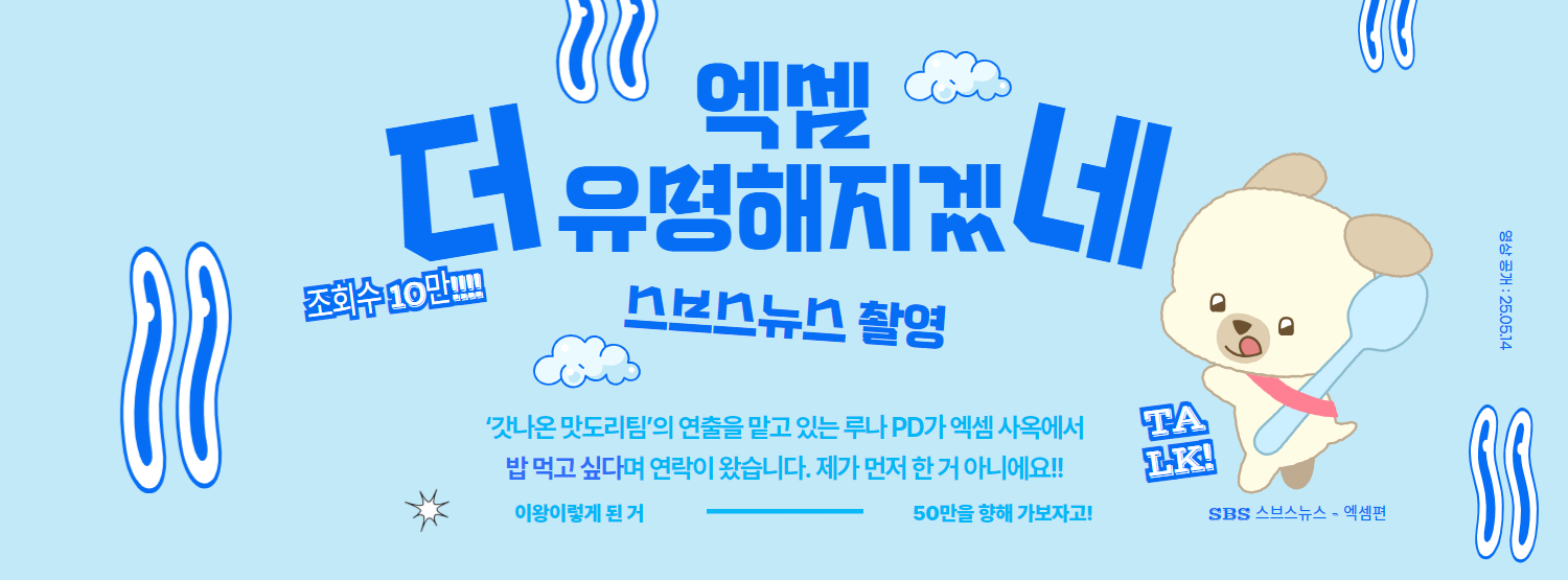 대기업 보도본부의 힘이란 이런 것일까? 업로드 되자마자 조회수 2,000을 찍더니, 6일 만에 10만을 넘었습니다. 십!만!명이 엑셈 홍보 영상을 봤다는 뜻입니다. 123만 구독의 힘을 새삼 느꼈네요~